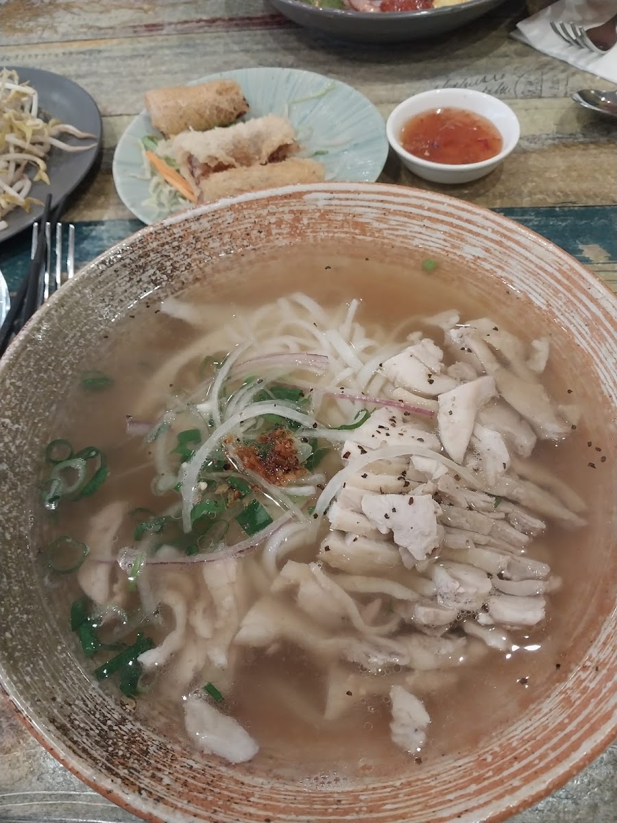 I like the dining environment as they have quite nice decoration, including a stylish bar counter, warm and modern Asian decoration, and lovely Vietnamese pendant lamps, etc. The cleanliness was good, though I still saw a few flies around, probably due to the entrance doors being opened for most of the time during their business hours. The staff was great and nice. I felt they were welcoming us even though we just ordered simple lunch without any drink. I love the rare tender beef fillet pho in noodle soup (Standard - $18.9). There were quite a lot of soft and delicious beef fillet slices, and the broth was so good. Though the portion of rice noodles was a bit smaller than most other Vietnamese restaurants, it's one of the most delicious pho that I ever had in Australia. The crackling roasted pork with steam rice was very good, too. It's priced at $15.9, a bit cheaper than other Vietnanese restaurants in Adelaide CBD. If they can offer a larger bowl with a bit more rice and roasted pork, but charging a big more like $17.9 or $18.9, I would prefer to go for a bigger bowl if I am a bit more hungry. The spring rolls were amazing, too. They were just appetisers, but unlike spring rolls made by wheat flour sheet that most other Vietnamese restaurants or Chinese restaurants do, their spring rolls were called Cha Gio, made by traditional rice paper wrapper which was very authentic and offered more crispy and crunchy for each bite. Having considered the services, dining environment, quality of food, prices, and the dining atmosphere in North Adelaide (plus on a lovely street with the name Melbourne Street, which is my favorite Australian city and with such an unusual name "the Spot on Melbourne"), I would say overall this was a very good dining experience for me. I highly recommend this Vietnamese restaurant.
